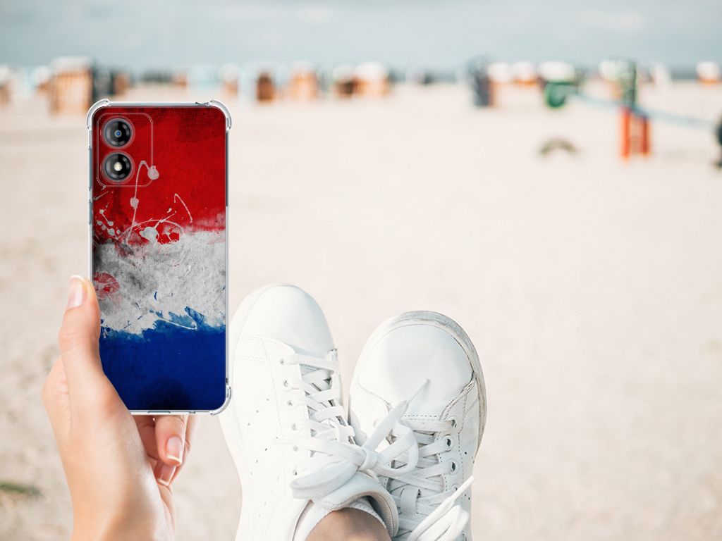 Ben je op zoek naar een uniek telefoonhoesje voor je Motorola Moto E13? Dan ben je bij B2C Telecom aan het juiste adres! Speciaal voor jou hebben we dit prachtige Nederlandse Vlag design in onze collectie hoesjes opgenomen. Het design wordt bedrukt op een Cover Case en is gemaakt van flexibel rubber. Het hoesje is perfect voor de actieve smartphonegebruiker door de opstaande randen/hoeken. Denk aan mensen die veel sporten, reizen of wandelen en net iets meer zekerheid willen als het op hun geliefde telefoon aankomt. Het design wordt alleen aan de bovenkant van het hoesje bedrukt en de randen blijven transparant. Aan de zijkanten zijn uitsparingen gemaakt waardoor je met gemak alle knoppen en poorten kunt bedienen. Wij adviseren om dit hoesje in combinatie met een screenprotector te gebruiken voor een langere levensduur van je telefoon. Wil je dit hoesje nog iets extra's geven? Voeg dan gratis je naam of een quote toe! Is dit design hoesje toch niet helemaal wat je zocht? Ontwerp dan zelf een hoesje in ons ontwerpprogramma.