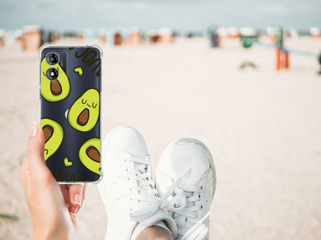 Ben je op zoek naar een uniek telefoonhoesje voor je Motorola Moto E13? Dan ben je bij B2C Telecom aan het juiste adres! Speciaal voor jou hebben we dit prachtige Avocado Singing design in onze collectie hoesjes opgenomen. Het design wordt bedrukt op een Stevig Bumper Hoesje en is gemaakt van flexibel rubber. Het hoesje is perfect voor de actieve smartphonegebruiker door de opstaande randen/hoeken. Denk aan mensen die veel sporten, reizen of wandelen en net iets meer zekerheid willen als het op hun geliefde telefoon aankomt. Het design wordt alleen aan de bovenkant van het hoesje bedrukt en de randen blijven transparant. Aan de zijkanten zijn uitsparingen gemaakt waardoor je met gemak alle knoppen en poorten kunt bedienen. Wij adviseren om dit hoesje in combinatie met een screenprotector te gebruiken voor een langere levensduur van je telefoon. Wil je dit hoesje nog iets extra's geven? Voeg dan gratis je naam of een quote toe! Is dit design hoesje toch niet helemaal wat je zocht? Ontwerp dan zelf een hoesje in ons ontwerpprogramma.