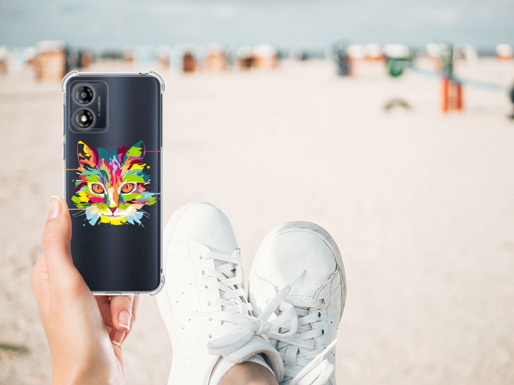 Ben je op zoek naar een uniek telefoonhoesje voor je Motorola Moto E13? Dan ben je bij B2C Telecom aan het juiste adres! Speciaal voor jou hebben we dit prachtige Cat Color design in onze collectie hoesjes opgenomen. Het design wordt bedrukt op een Stevig Bumper Hoesje en is gemaakt van flexibel rubber. Het hoesje is perfect voor de actieve smartphonegebruiker door de opstaande randen/hoeken. Denk aan mensen die veel sporten, reizen of wandelen en net iets meer zekerheid willen als het op hun geliefde telefoon aankomt. Het design wordt alleen aan de bovenkant van het hoesje bedrukt en de randen blijven transparant. Aan de zijkanten zijn uitsparingen gemaakt waardoor je met gemak alle knoppen en poorten kunt bedienen. Wij adviseren om dit hoesje in combinatie met een screenprotector te gebruiken voor een langere levensduur van je telefoon. Wil je dit hoesje nog iets extra's geven? Voeg dan gratis je naam of een quote toe! Is dit design hoesje toch niet helemaal wat je zocht? Ontwerp dan zelf een hoesje in ons ontwerpprogramma.