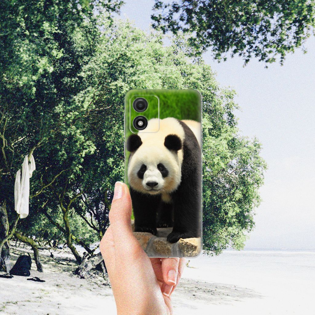 Ons design hoesje met afbeelding van een Panda is momenteel bijzonder populair. Wij denken te weten waarom dit zo is. De panda wordt door de bolle vorm van het gezicht in combinatie met de 'grote' zwarte ogen beschouwd als aandoenlijk en aaibaar. Dit maakt deze tpu case zeer geliefd onder zeer veel smartphonegebruikers. Een Motorola Moto E13 TPU Hoesje met panda is een zeer effectieve en handige bescherming van de smartphone. De achterzijde van de case wordt volledig bedrukt met panda, terwijl de zijkanten doorzichtig blijven. Wij zijn ervan overtuigd dat jij jezelf populair maakt met dit hoesje, waardoor je weinig pandapunten zult scoren. De flexibele tpu case is gemaakt van onbreekbaar en buigzaam materiaal, dat verreweg de meeste schokken en stoten probleemloos opvangt.
