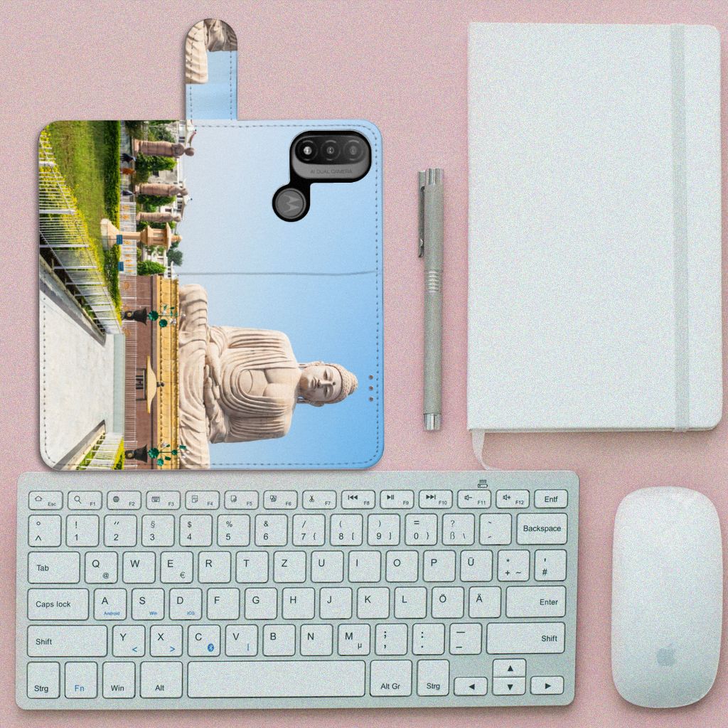 Van dit hoesje met boeddha print word je vanzelf rustig van binnen. Een boeddha staat te allen tijde voor geluk, symbolische genezing, liefde voor de ander, maar ook voor eigenwaarde. Daarnaast staat de boeddha symbool voor eeuwige vriendschap. Boeddhabeelden zie je vooral in tempels, maar tegenwoordig zien we ze ook steeds vaker in huizen en tuinen staan. Een boeddha dient met respect te worden behandeld. Doe dat dus ook met je telefoon. Dat kan met dit hoesje met Boeddha print. De case zorgt ervoor dat jij en je Motorola Moto E20 | E30 | E40 voor langere tijd in harmonie samen kunnen leven. Het design staat op een Flip Cover. Dit smartphonehoesje beschermt jouw telefoon aan alle zijden en beschikt over verschillende opbergvakjes voor pasjes en briefgeld. De case sluit perfect af met het lipje aan de buitenkant. De houder aan de binnenzijde is van TPU. Alle zijden van het hoesje worden bedrukt, inclusief het lipje.