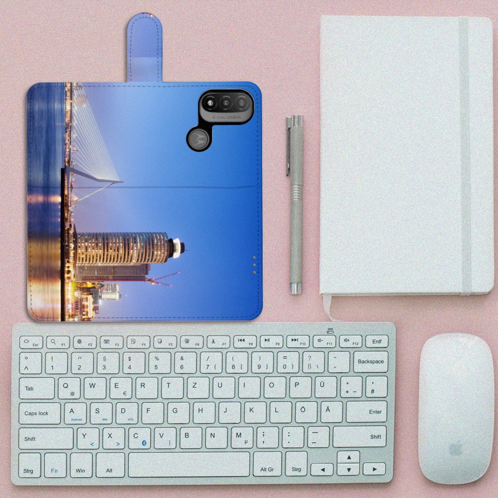 Een hoesje met de Rotterdamse skyline is niet alleen voor de plaatselijke inwoners een bijzonderheid. Ook jij zult glimmen van trots wanneer het gaat over jouw boekhoesje met de Rotterdamse skyline. Sinds 1975 zijn hoogbouw en Rotterdam onlosmakelijk met elkaar verbonden. Dat zie je duidelijk terug als je dit smartphone hoesje koopt. Een Motorola Moto E20 | E30 | E40 Flip Cover is zeer praktisch dankzij de opbergvakjes aan de binnenzijde en het magnetische lipje aan de buitenzijde en beschermt jouw smartphone aan alle zijden. Dankzij het platte Hollandsche landschap zie je de Rotterdamse binnenstad vanuit verschillende posities liggen. Beloon jezelf en je telefoon met dit mooi Rotterdamse boekhoesje. De case heeft een houder van TPU, waar jouw telefoon precies in past.