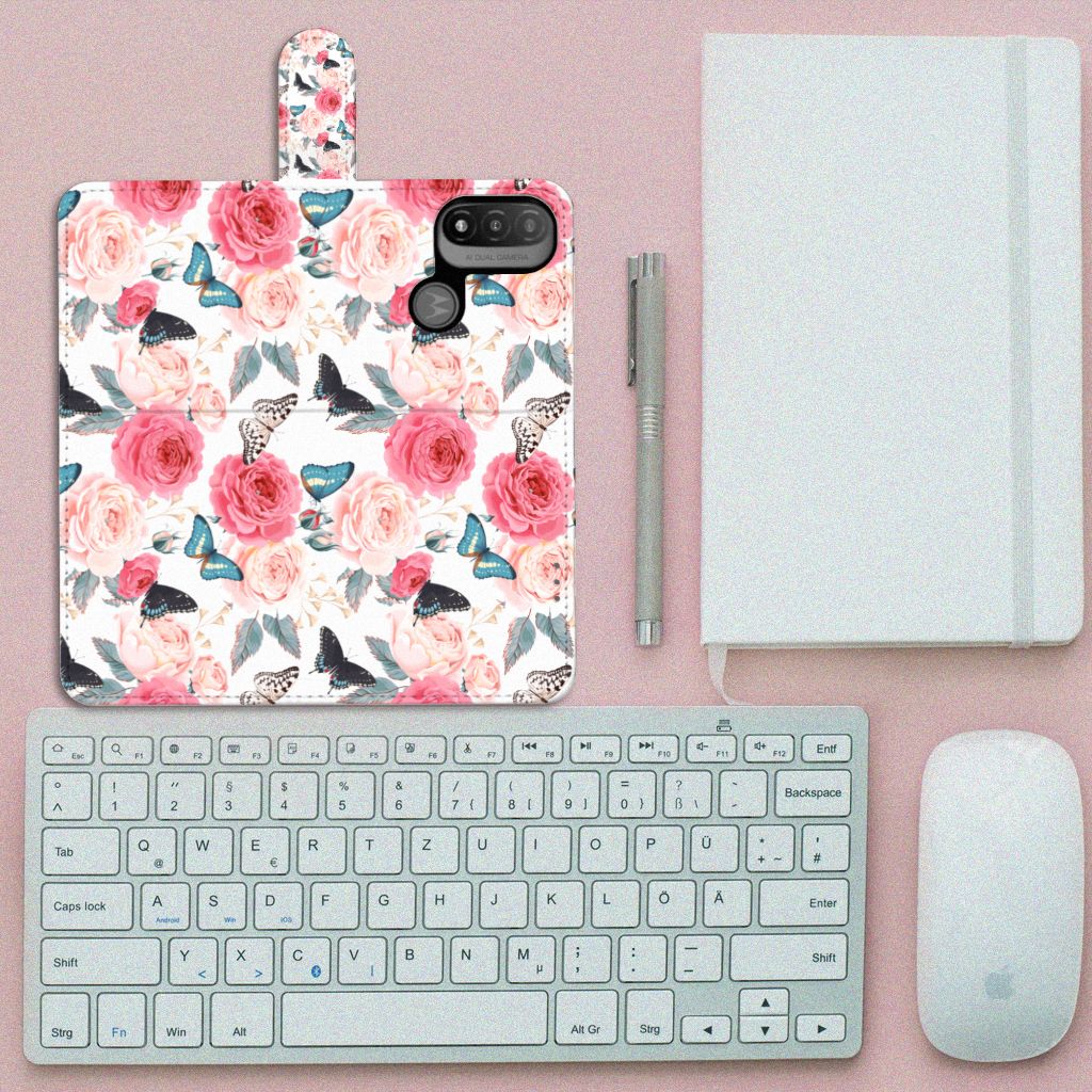 Motorola Moto E20 | E30 | E40 Hoesje gemaakt van TPU en kunstleer Butterfly Roses