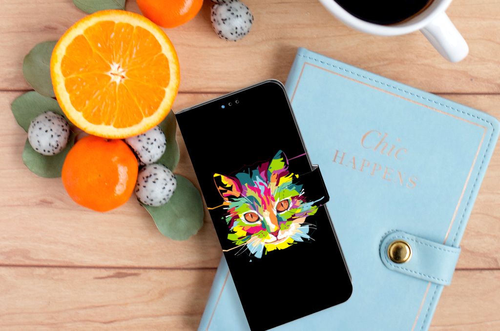 Als jij van katten houdt en op zoek bent naar een uniek hoesje, dan is dit het hoesje wat je wilt hebben. Op de voorkant van dit Leuk Hoesje vind je namelijk een mooie afbeelding van een kat in alle kleuren van de regenboog op een zwarte klassieke achtergrond. Naast dat het een mooi hoesje betreft, is het ook nog eens ontzettend handig. Zo kun je in deze bookcase wel twee á drie pasjes en briefgeld kwijt. Hiermee kun je jouw belangrijkste bezittingen op een plek bewaren in het boekhoesje en kun je jouw portemonnee voortaan thuislaten. Een bookcase heeft daarnaast ook nog het voordeel dat jouw telefoon aan alle zijdes wordt beschermd in dit leuke hoesje, dubbel zo handig dus!