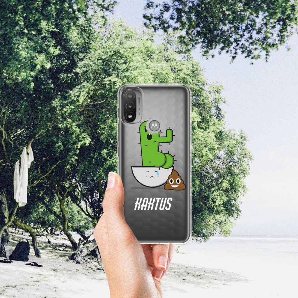 De cactus is leuk, hip en makkelijk te verzorgen. Maar wie denkt dat hij helemaal zonder aandacht kan, heeft het mis. Op dat moment komt hij in opstand, zoals op dit grappige design hoesje met cactus te zien is. Deze Telefoonhoesje met Naam met Cactus Poo design is van alle markten thuis. Het is een zeer veilig maar ook prachtig en praktisch hoesje. Dat bewijzen het flexibele en schokabsoberende materiaal en het lichte gewicht. De meeste cactussen komen uit Amerika. Daar groeien ze in hun natuurlijke omgeving, de woestijn en steppen. Maar ze groeien ook in tropische regenwouden. Dit geeft aan dat de cactus een plant is die zich makkelijk aanpast. Dat geldt dus helaas niet voor de cactus op dit tpu hoesje, maar jouw Motorola Moto E20 | E40 is wel goed beschermd. Valt de telefoon op de grond, dan beschermen de opstaande randen van de case het touchscreen. Alleen de bovenkant van dit hoesje wordt bedrukt met de geinige kaktus. De zijkanten van de TPU case blijven transparant.