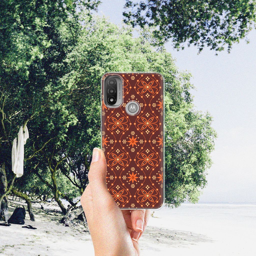 Batikken is een super oude kunstvorm. Met deze methode wordt een geweven stof met verf gedecoreerd. Er zijn stoffen gevonden in het Midden-Oosten en Azië van meer dan tweeduizend jaar oud. Wie had kunnen bedenken dat we zo’n mooie batik-print duizenden jaren later zelfs op telefoonhoesjes zouden terugvinden? Dit TPU bumper in voor je Motorola Moto E20 | E40 heeft een prachtig symmetrisch patroon. Door de bruine en oranje kleuren doet het design een beetje retro aan en is het toch subtiel te noemen. Naast het feit dat dit hoesje gewoon erg mooi is, is je telefoon er natuurlijk ook goed mee beschermd. TPU is een zeer sterk maar toch licht en flexibel materiaal en is daarom ideaal voor om je smartphone.