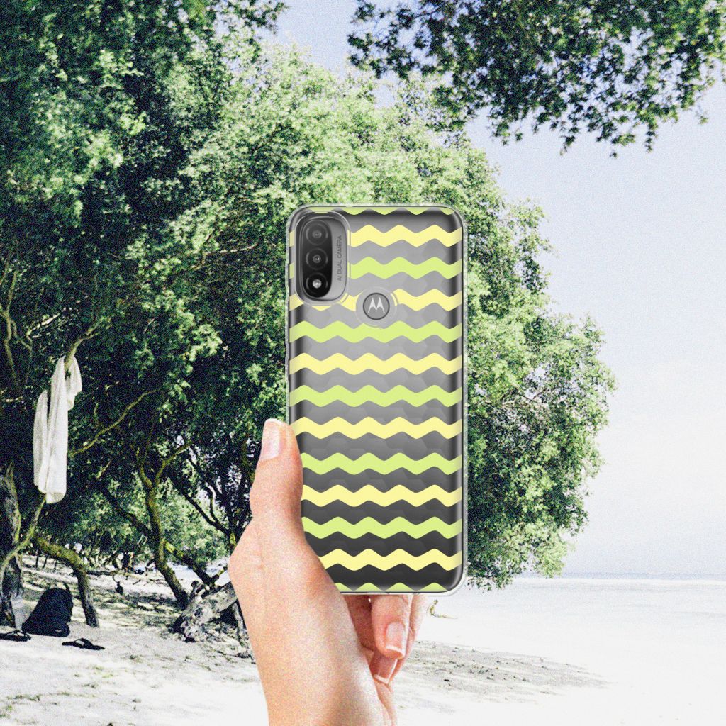 Dit Waves Yellow design hoesje met licht groene en gele golven is speciaal ontworpen voor jouw telefoon. We hebben een vleugje lichtgeel toegevoegd, zodat de case er een beetje spannender en leuker uitziet. Dit licht groene hoesje met licht groene golven ziet er oogstrelend uit. Het wordt in ons eigen magazijn bedrukt, in zeer goede kwaliteit inkt. Wij kunnen dus een zeer duurzaam hoesje met licht groene golven garanderen. Dit hele mooie Motorola Moto E20 | E40 TPU bumper heeft vele extra’s. Is dit licht groene design hoesje je op het lijf geschreven? Grijp dan nu je kans. Deze TPU case met lichtgroene golven wordt alleen aan de bovenkant bedrukt en is zeer flexibel. De randen van het hoesje met licht groene golven blijven transparant en worden niet bedrukt. Met dit hoesje past jouw telefoon altijd in je broekzak.