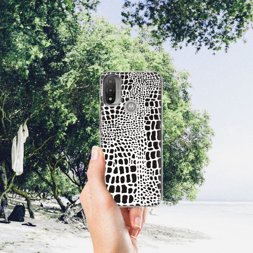 Deze tpu case met zwarte en witte Slangenprint kunnen wij zeer exclusief noemen. Zeker als je er nog een bijzondere tekst van jezelf aan toevoegt, zoals je eigen naam in een sierletter. Jouw tpu case krijgt dan een persoonlijke uitstraling, net nog een beetje specialer dan dit hoesje met zwarte en witte slangenprint. Wat niets afdoet van de exclusiviteit van deze tpu case met zwarte en witte slangenprint. Ben jij toe aan een stoer en opvallend Motorola Moto E20 | E40 TPU Hoesje? Pak dan dit design met print van slangenhuid als basis. Het tpu hoesje is zeer flexibel en wordt alleen aan de bovenzijde bedrukt. De randen van dit flexibele hoesje blijven doorzichtig. Jij bent ervan verzekerd dat jouw smartphone tegen een stootje kan met dit tpu hoesje met zwarte en witte slangenprint.