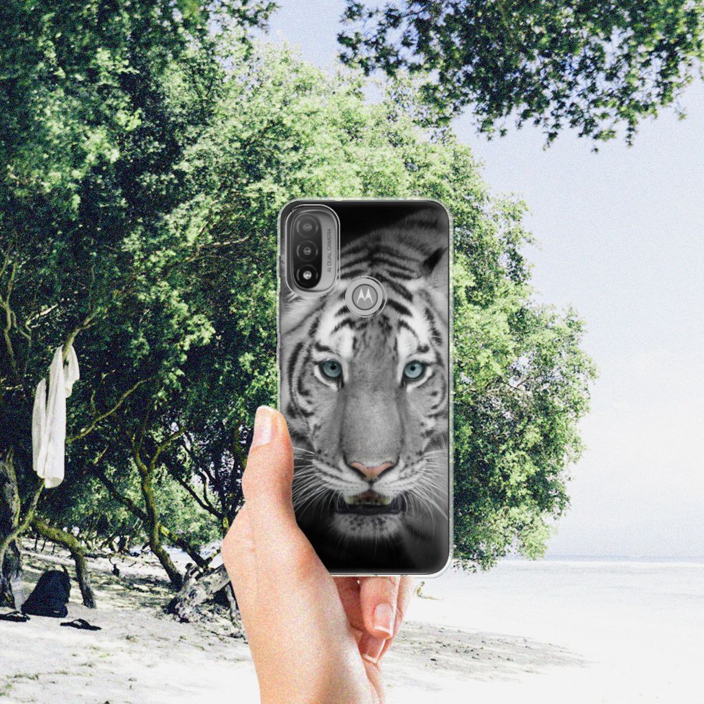 Omdat de Witte Tijger zo bijzonder is, zijn wij bereid deze voor zeer lage kosten op een tpu case te zetten. Dit kunnen we zo goedkoop doen omdat we het drukwerk in eigen beheer doen. Witte tijgers leefden lange tijd in de bossen van India, Bangladesh, Nepal, Bhutan en China en kunnen wel 257 kilo wegen. Dit zwaargewicht kunnen we bedrukken op verschillende soorten hoesjes, zoals deze tpu cases. Deze Motorola Moto E20 | E40 TPU Hoesje kan exclusief in het bezit van jou komen. Zeker als je er zelf nog unieke teksten en/of beelden aan toevoegt. Het tpu hoesje is zeer flexibel en wordt alleen aan de bovenzijde bedrukt. De randen van dit flexibele hoesje blijven doorzichtig. Tegenwoordig zijn witte tijgers alleen in gevangenschap te bewonderen. Jij zorgt voor een goede bescherming van je smartphone met dit design hoesje met witte tijger.