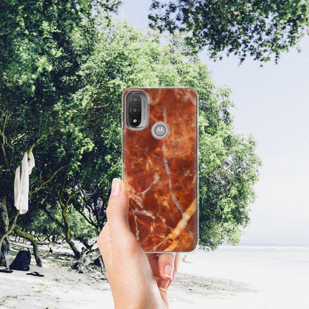 Dit design hoesje met Marmer Bruin is voor de artistieke personen onder ons. De Grieken en Romeinen wisten het al te waarderen door het als bouw- en bekledingsmateriaal toe te passen. Naast het witte Carrara marmer met haar zacht grijze geaderde belijning zijn de diverse soorten in een ruim kleurenpallet te krijgen. We hebben verschillende kleuren op design hoesjes gezet, zoals in dit geval bruin marmer. Dit is een Motorola Moto E20 | E40 TPU Siliconen Hoesje met marmer in bruine kleur. Het marmer wordt bedrukt op de voorkant van een tpu case, die beschikt over opstaande randen aan de voorkant en heel goed combineert met een screenprotector. De rijkheid aan kleuren en varianties in afwerking geeft ontwerpers de vrijheid om met marmer hele mooie architectonische projecten te realiseren. Wij hebben onze designer ook veel vrijheid gegeven. Het resultaat zie je terug in deze tpu case met bruin marmer, die jouw smartphone goed beschermt. De zijkanten van de case worden niet bedrukt met marmer.