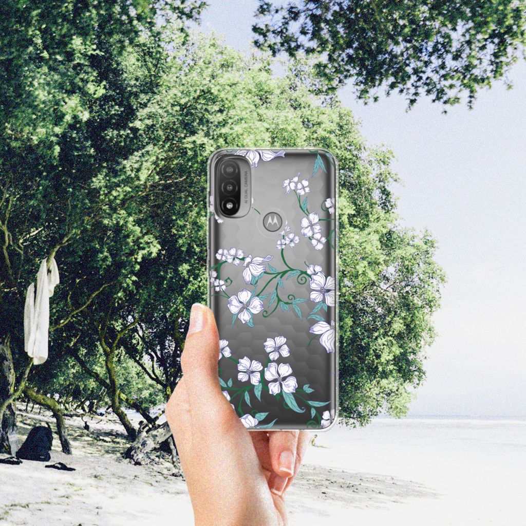 Witte bloemen staan voor puurheid, frisheid, helderheid en eenvoud. Geen wonder dus dat ze al heel lang populair zijn en ook prachtig staan op een telefoonhoesje. Niet iedereen houdt immers van kleurrijke designs. Toch graag bloemetjes op je TPU Case maar zonder bonte kleuren? Dan is dit hoesje voor de Motorola Moto E20 | E40 perfect voor jou. TPU is flexibel en heel erg sterk. Zo is je telefoon aan de achterkant en de randen heel goed beschermd. De case is aan de bovenkant bedrukt, de randen blijven transparant. Het TPU-hoesje is perfect te combineren met een screenprotector, zo zijn je telefoon en je beeldscherm altijd goed beschermd.