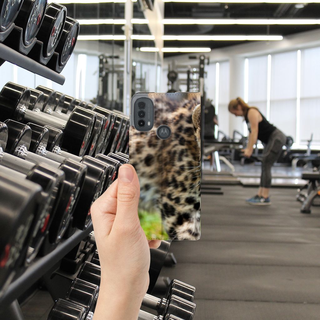 De luipaard is een grote, gespierde katachtige met korte, krachtige poten en een lange staart. Aangezien het op dit hoesje een baby luipaard betreft, zijn deze eigenschappen nog niet volledig tot wasdom gekomen. De kop van de luipaard is breed en een beetje rond van vorm met kleine, ronde oren. De snuit is middelgroot, met krachtige kaken en lange snorharen. De vacht van een luipaard is bedekt met veel zwarte vlekken. Kies je voor dit design hoesje, dan zal er van vlekken op jouw smartphone nooit en te nimmer sprake zijn. Het stoere en tegelijkertijd aandoenlijke design staat op een stand case. Een Motorola Moto E20 Hoesje maken beschermt jouw telefoon aan alle kanten en beschikt over een 1 opbergvakje en een speciale standaard. Het hoesje wordt afgesloten met een magneet aan de binnenzijde. De houder aan de binnenzijde is van TPU.