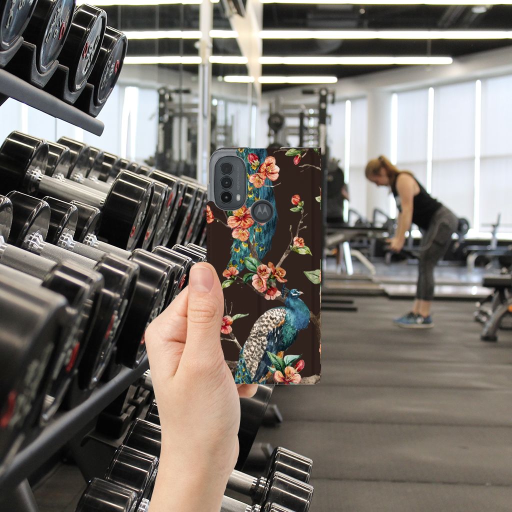 Op deze Motorola Moto E20 Hoesje maken kun jij zo trots als een pauw zijn. Met dit geweldige design hoesje met een Pauw met Bloemen erop kun jij je smartphone voor zeer lange tijd beschermen. Deze stand case is zeer duurzaam en heeft aan de binnenkant een opbergvakje, waarin je een fitnesspas of pinpas kwijt kunt. Met een stand case met fleurige bloemen en trotse pauwen wordt jouw telefoon er een stuk mooier op. De onderscheidend case heeft een houder van TPU en een magneet aan de binnenkant. Zie jij liever jouw eigen huisdier op een telefoonhoesje? Dan adviseren we je zelf een hoesje te ontwerpen met onze unieke Phone Case Designer. We bedrukken alle zijden van de stand case, met duurzame inkt.