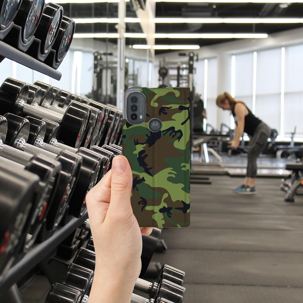 Voel je jezelf verbonden met het leger, dan zal deze Motorola Moto E20 Hoesje met Magneet je zeker bevallen. Het design hoesje beschikt namelijk over donkere camouflage kleuren. Deze worden vaak gebruikt door mensen die zich graag willen mengen in hun omgeving. Dit Army Dark hoesje is er dus voornamelijk in kleuren die in de natuur voorkomen, zodat je één wordt met je achtergrond. Beschermt de krijgsmacht volk en vaderland, dit hoesje in donkere camouflage kleuren zal jouw telefoon onder alle omstandigheden schadevrij houden. Met een hoesje in dit soort kleuren zal je niet zo snel opvallen. Wel is het echter een hele stoere case. Het design staat op een stand case. Deze case beschermt jouw telefoon aan alle kanten en beschikt over een 1 opbergvakje en een speciale standaard. Het hoesje wordt afgesloten met een magneet aan de binnenzijde. De houder aan de binnenzijde is van TPU. Alle zijden van de case worden bedrukt met donkere camouflage kleuren.
