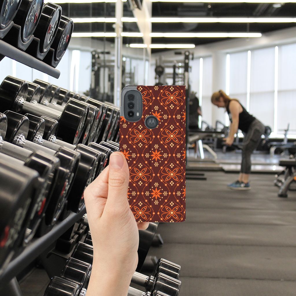Batikken is een super oude kunstvorm. Met deze methode wordt een geweven stof met verf versierd. Er zijn zulke stoffen gevonden in het Midden-Oosten en Azië van meer dan tweeduizend jaar oud. Wie had kunnen bedenken dat we zo’n mooie batik-print duizenden jaren later zelfs op telefoonhoesjes zouden terugvinden? Dit Hoesje met Magneet in voor je Motorola Moto E20 heeft een prachtig symmetrisch patroon. Door de bruine en oranje kleuren doet het design een beetje retro aan en is het toch subtiel te noemen. Het hoesje heeft binnenin één vakje voor een pasje en een magnetische sluiting aan de binnenkant. Verder heeft de Batik brown-hoes een houder van TPU. Het leuke van een standcase is dat je hem eenvoudig neer kunt zetten. Zo heb je je handen vrij als je bijvoorbeeld een video wilt kijken op je smartphone.