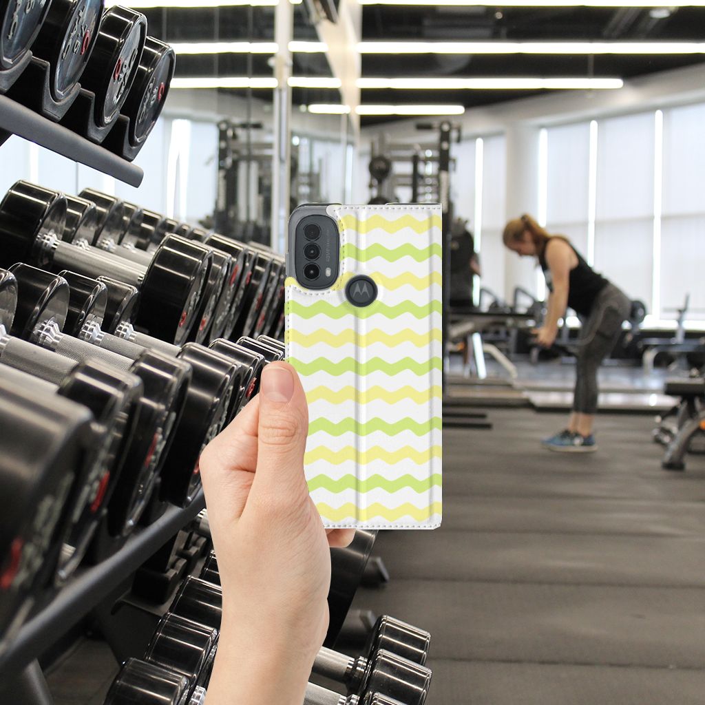 Dit Waves Yellow design hoesje met licht groene en gele golven is speciaal ontworpen voor jouw telefoon. We hebben een vleugje lichtgeel toegevoegd, zodat de case er een beetje spannender en leuker uitziet. Dit licht groene hoesje met licht groene golven ziet er oogstrelend uit. Het wordt in ons eigen magazijn bedrukt, in zeer goede kwaliteit inkt. Wij kunnen dus een zeer duurzaam hoesje met licht groene golven garanderen. Dit hele mooie Motorola Moto E20 Hoesje met Magneet heeft vele extra’s. Is dit licht groene design hoesje je op het lijf geschreven? Grijp dan nu je kans. Deze stand case met licht groene golven beschermt jouw telefoon aan alle kanten en beschikt over een 1 opbergvakje en een speciale standaard. Het licht groene hoesje wordt afgesloten met een magneet aan de binnenzijde. De houder aan de binnenzijde is van het flexibele TPU. Alle zijden van de stand case worden bedrukt.
