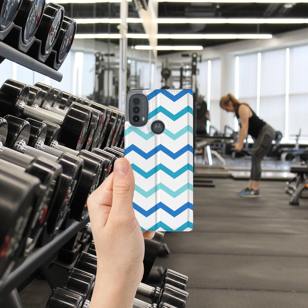 Dit zigzag blauwe design hoesje is speciaal ontworpen voor jou. We hebben bewust verschillende stijlen blauw gebruikt, zodat er voldoende sprake is van variatie. Dit blauwwitte Hoesje met Magneet ziet er super strak uit. Dat kan ook niet anders, als je weet dat onze zeer talentvolle designer er hoogstpersoonlijk voor verantwoordelijk is. Hij schudt wekelijks nieuwe designs uit zijn mouw en dit zigzag blauwe hoesje is een van zijn fraaiste creaties. Een heel dik design hoesje, al zeggen we het zelf. Valt dit blauwwitte design hoesje goed bij jou? Bestel het dan vandaag nog en je hebt het morgen in huis. Het design staat op een stand case. Deze case beschermt jouw Motorola Moto E20 aan alle kanten en beschikt over een 1 opbergvakje en een speciale standaard. Het hoesje wordt afgesloten met een magneet aan de binnenzijde. De houder aan de binnenzijde is van TPU. Alle zijden van de stand case worden bedrukt.