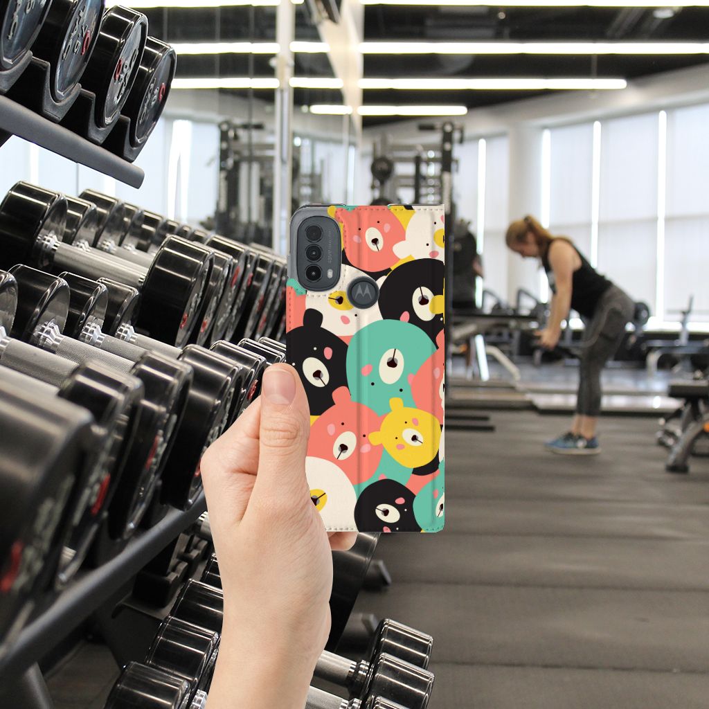 Op dit hoesje vind je een bereschattig ontwerp! Vergeef ons de woordgrap, maar hoe moeten we dit lieve ontwerp anders omschrijven? Op dit knuffelige ontwerp zie je leuke, getekende beertjes in vrolijke kleuren als geel, blauw en roze. Dankzij de contrasterende witte en zwarte beertjes vallen de felle kleurtjes nog meer op. Al met al is dit Magnet Case voor de Motorola Moto E20 een perfect hoesje voor de knuffelberen onder ons. Dit populaire smartphonehoesje met het Bears-design heeft één vakje voor een pasje of briefgeld en is aan alle zijden bedrukt. Met de standcase zet je je telefoon gemakkelijk neer, zodat je je handen vrij hebt als je bijvoorbeeld een video wilt kijken. De binnenkant van de standcase is van grijs PU-leer. Dat is fijn, omdat je daardoor niet snel vlekken ziet op je hoesje.