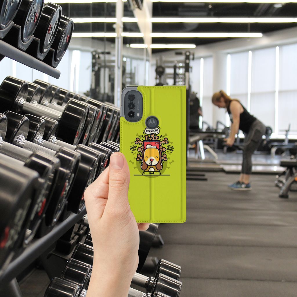 Ben je op zoek naar een uniek telefoonhoesje voor je Motorola Moto E20? Dan ben je bij B2C Telecom aan het juiste adres! Speciaal voor jou hebben we dit prachtige Doggy Biscuit design in onze collectie hoesjes opgenomen. Het design wordt bedrukt op een Magnet Case en heeft een vakje aan de binnenkant voor een pasje. Het fijne aan dit hoesje is dat je het als standaard neer kunt zetten. Hierdoor geniet je nog meer als je een filmpje aan het kijken bent op je telefoon. Het hoesje wordt afgesloten door magneten aan de binnenkant. Wil je dit design hoesje nog iets extra's geven? Voeg dan gratis je naam of een quote toe! Is dit design hoesje toch niet helemaal wat je zocht? Ontwerp dan zelf een hoesje in ons ontwerpprogramma.