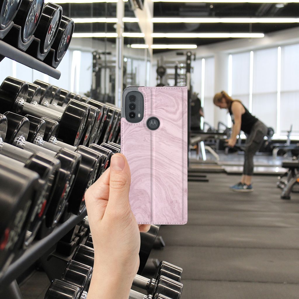 Motorola Moto E20 | E30 | E40 Bookcase Marble Pink - Origineel Cadeau Vriendin