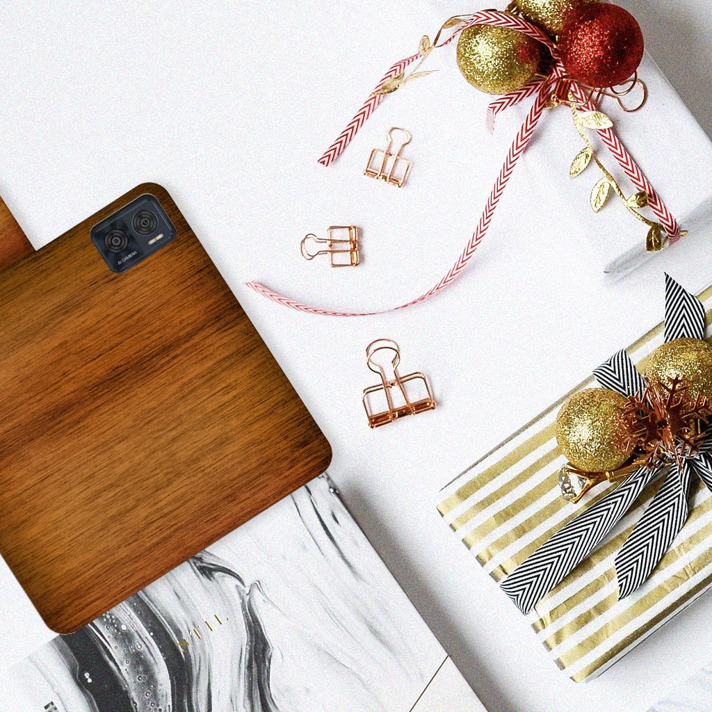 Motorola Moto E22 | E22i Book Style Case met pasjeshouder Donker Hout