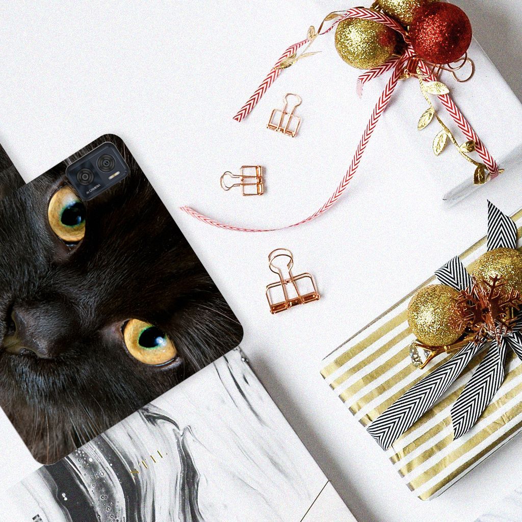 Motorola Moto E22 | E22i Telefoonhoesje sluit met magnetische sluitclip Design Zwarte Kat