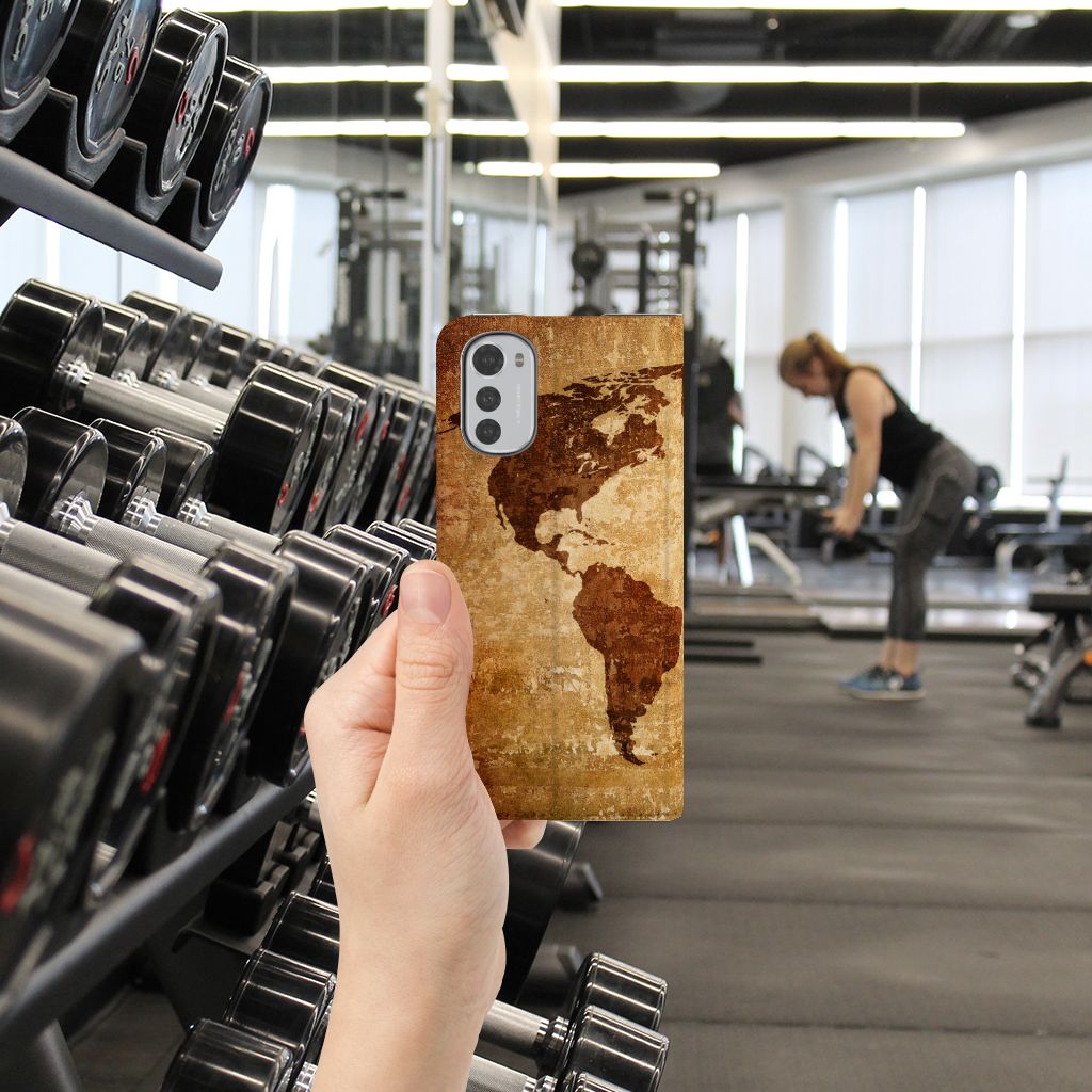 Als je een hoesje koopt met een wereldkaart, kun jij op veilige wijze met je smartphone rond de wereld reizen. Ga je zonder een boekhoesje met wereldkaart het buitenland verkennen, dan loop je veel te groot risico dat je stukken krijgt aan je smartphone. Met als gevolg dat je de belangrijke gebeurtenissen op je reis wellicht niet meer vast kunt leggen om door te sturen aan je vrienden. In het slechtste geval wordt jouw toestel zonder een smartphone hoesje met wereldkaart onbruikbaar. Wij kunnen de wereldkaart bedrukken op een stand case. Een Motorola Moto E32 | Moto E32s Book Cover beschermt jouw telefoon aan alle kanten en beschikt over een 1 opbergvakje en een speciale standaard. Het hoesje wordt afgesloten met een magneet aan de binnenzijde. De houder aan de binnenzijde is van TPU. Dit stand hoesje met wereldkaart is voor een zeer laag bedrag te bestellen.