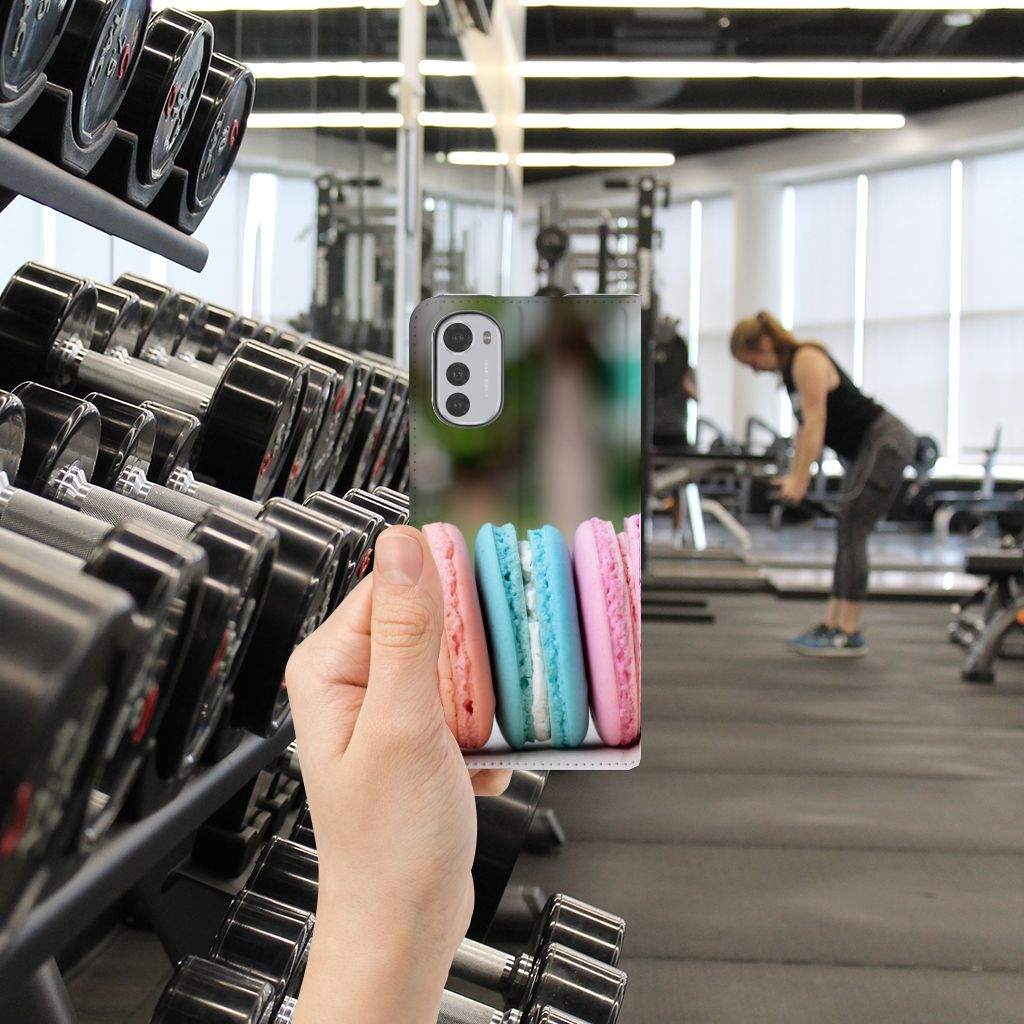 Dit stand hoesje met macarons is een zeer opvallende bescherming voor jouw smartphone. Macarons zijn Franse koekjes: kleine, rond en luchtig. Ze zijn aan elkaar geplakt met een zachte vulling. Ze worden in veel verschillende smaken gemaakt, herkenbaar aan de verschillende kleuren zoals chocolade (donkerbruin), mokka (middenbruin), kersen (rood), pistache (groen), aardbei (roze), framboos (karmijn), citroen (geel) en kokos (roomwit). Deze kleuren kun je natuurlijk ook zien op dit fraaie design hoesje met macarons. Heb je altijd al een Motorola Moto E32 | Moto E32s Flip Style Cover willen hebben met macarons? Grijp dan nu je kans. Deze case heeft zeer veel goede eigenschappen, zoals 1 opbergvakje en een magnetische sluiting aan de binnenkant. Dit design hoesje met macarons wordt aan alle zijden bedrukt. De houder aan de binnenkant van het hoesje is van TPU. De case heeft ook een handige standaard.