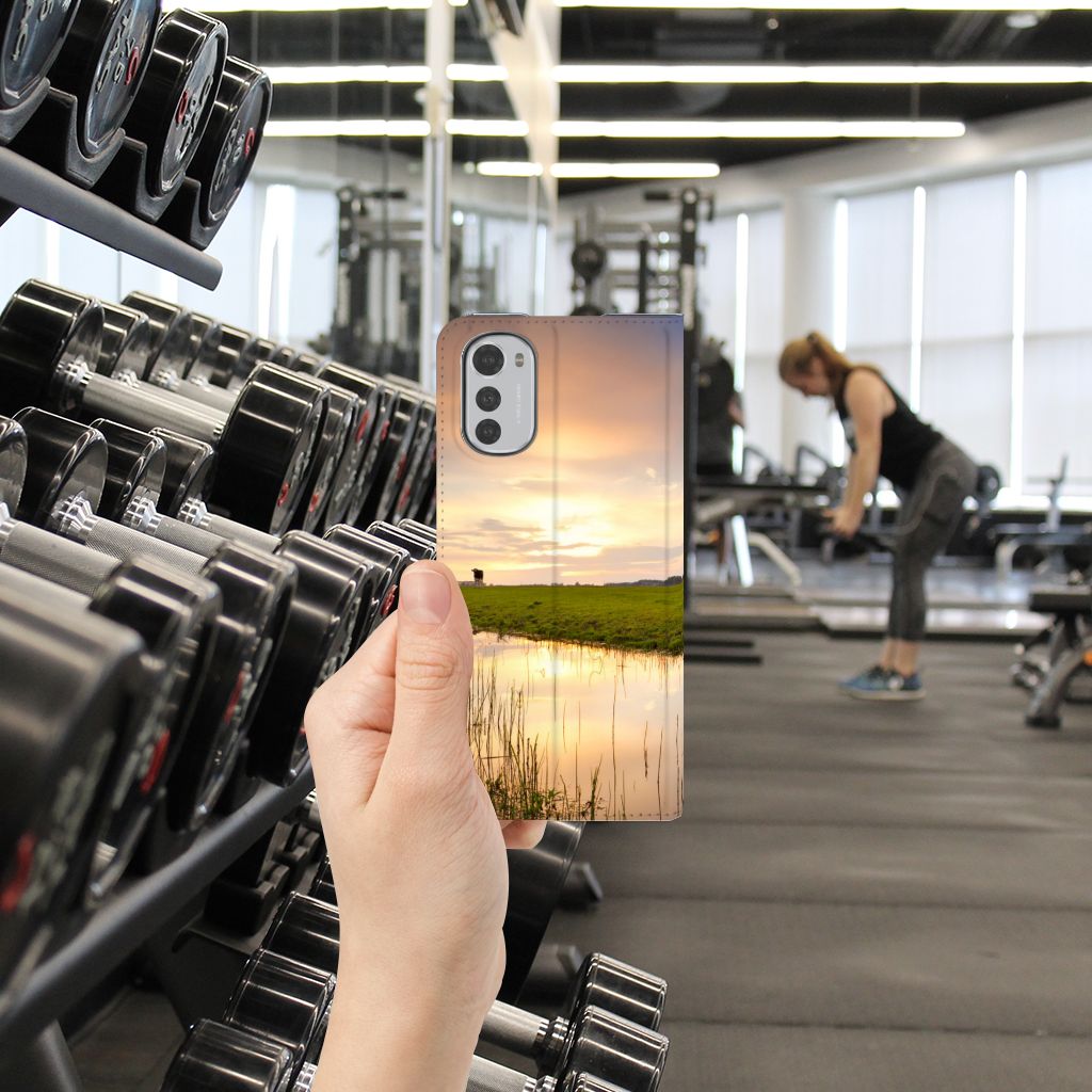 Het levert een idyllisch plaatje op, dit hoesje met een koe en ondergaande zon op de achtergrond. Door een koe buiten te laten lopen en grazen, hebben ze minder kans om ziek te worden. De Koe graast het liefst met soortgenoten, al zijn deze een stukje van de koe op de case verwijderd. Dit levert ook een mooi plaatje op, zoals je kunt zien op dit design hoesje. Deze stand case ziet er strak uit en is voorzien van verschillende uitsparingen. Een Motorola Moto E32 | Moto E32s Hoesje maken met magneet aan de binnenzijde beschermt jouw smartphone overal. Alle zijden zijn bedrukt. Koeien hebben lange graasperioden nodig, afgewisseld door rust- en herkauwperioden. Zo goed als grazen voelt voor koeien, zo lang zal jouw design hoesje meegaan. De binnenkant van de stand case is van TPU, de buitenzijde van leer.