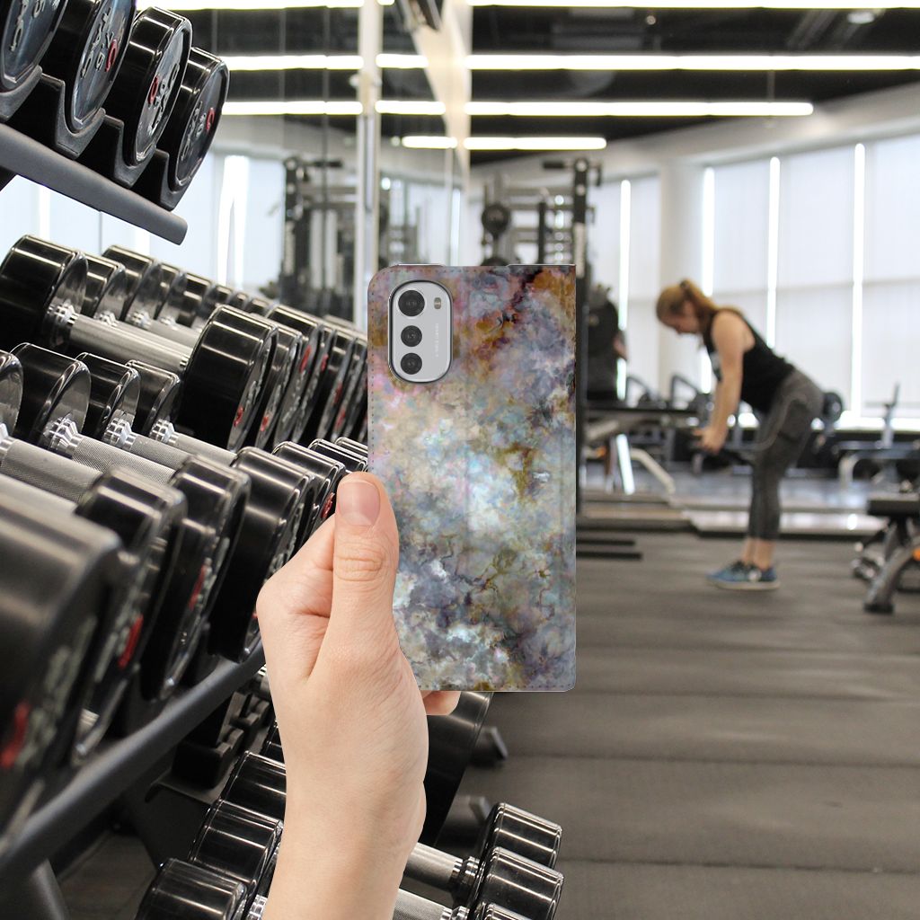 Deze Motorola Moto E32 | Moto E32s Standcase met Deze Motorola Moto E32 | Moto E32s Standcase met marmer grijs is geen doorsnee product, maar onderscheidend in alle opzichten. Marmer is een zeer gewaardeerd bouwmateriaal, dit gaat zelfs terug tot de Romeinen, waardoor dit ook een symbolische waarde heeft op dit hoesje. Het stevige stand hoesje in een grijze kleur beschikt over een vakje voor een pasje of briefgeld en een magnetische sluiting aan de binnenzijde. Verder heeft de case met grijze marmer een houder van TPU. Marmer doet het goed op onze smartphone hoesjes. We hebben deze in zeer veel verschillende kleuren in ons assortiment zitten. Kijk maar eens naar dit boekhoesje met grijze marmer, dat de ideale bescherming voor jouw smartphone biedt. Je kunt het hoesje met grijs marmer ook gebruiken als basis voor je eigen ontwerp. Behalve het grijs kun je dan nog vele andere kleuren toevoegen. Om nog maar te zwijgen over die mooie foto’s en teksten van jezelf.