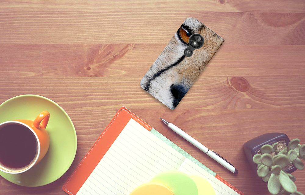 Wist je dat een cheetah, ook wel jachtluipaard genoemd, een topsnelheid van 120 km/u kan halen? Dit maakt de cheetah tot het snelste landdier ter wereld. Dit design hoesje met cheetah print kunnen we dus met recht zeer flitsend noemen. Dit komt niet alleen door de foto van het jachtluipaard, maar ook door de uitstraling van het hoesje. De close up van het dier hebben we op een stand case gezet. Dit is een multifunctionele case, met een vakje aan de binnenzijde waarin je een pasje kwijt kunt. Hiermee is de kous nog niet af, want een Motorola Moto E5 Play Hoesje maken wordt aan de binnenzijde magnetisch afgesloten en heeft een standaard. De vacht van jachtluipaarden is bedekt met ronde, zwarte vlekjes. Hierdoor valt het dier in zijn natuurlijke leefomgeving zo min mogelijk op. Jij doet dat zeker wel, met deze stand case met design. De buitenzijde is van leer, de houder aan de binnenzijde van TPU.