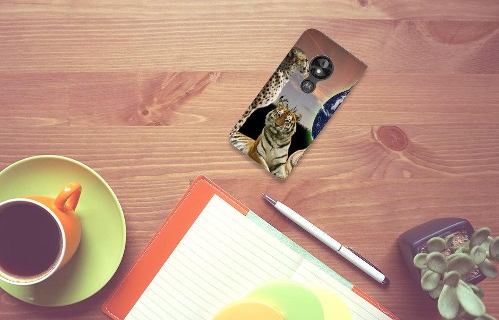 Deze standcase met roofdieren kan exclusief in het bezit van jou komen. Bovendien kun je hier zelf nog unieke teksten en/of beelden aan toevoegen. Je Hoesje maken krijgt dan een unieke identiteit. Roofdieren zoals tijgers op dit hoesje zijn voortdurend op zoek naar een geschikte prooi. De tijgers met aardbol op de achtergrond op deze stand case geven jouw Motorola Moto E5 Play een hele stoere uitstraling. Deze bijzondere case is van PU-leer (buitenzijde) en TPU (binnenzijde) en beschikt over een houder en een speciale standaard. Verder is deze stand case met roofdieren voorzien van een magnetische sluiting aan de binnenzijde. Je zorgt voor de perfecte bescherming van je smartphone met dit design hoesje met roofdieren met aardbol op de achtergrond.