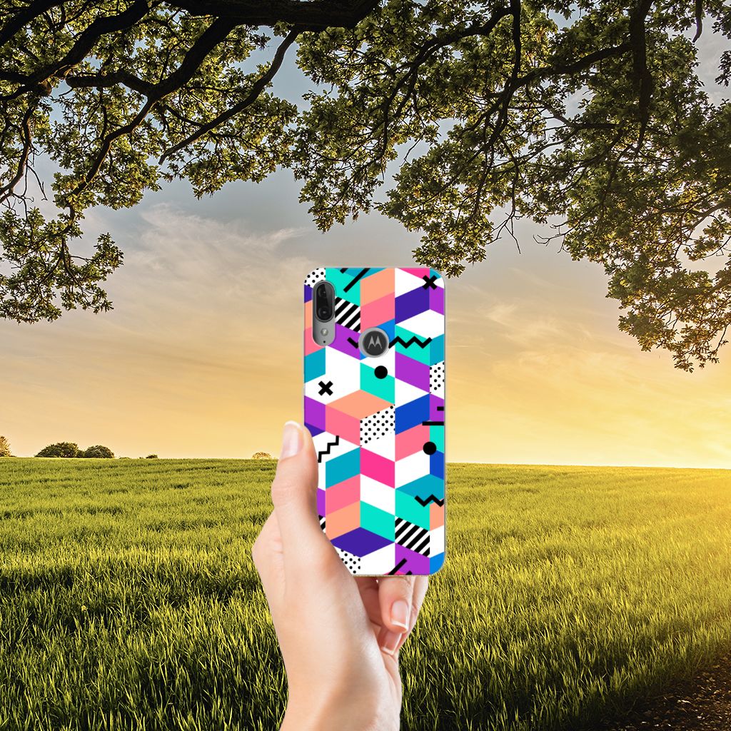 Motorola Moto E6 Plus TPU Hoesje Kleurrijke Blokken