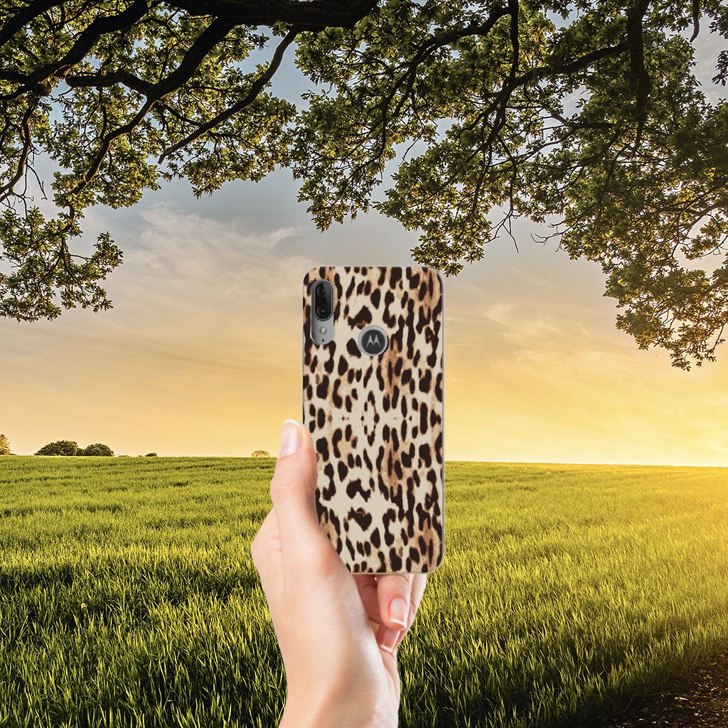 Het luipaard wordt ook wel een panter genoemd. De bruingele vacht met een patroon van rozetachtige vlekken geeft een hele goede schutkleur. Dit zie je ook op een fraaie manier afgebeeld op dit super stoere hoesje met luipaardprint. Mensen die indruk willen maken kopen deze tpu case met Leopard print. Een Motorola Moto E6 Plus TPU Hoesje is erg flexibel en stevig. Het is praktisch – door het elastische materiaal neem je de telefoon makkelijk met je mee – en beschermt jouw smartphone aan de achterzijde en zijkanten zeer goed. Het luipaard is sterk en behendig en wellicht typeert jou dat ook wel. Dan past dit hoesje met luipaard perfect bij jou. De houder van TPU is minstens zo sterk als het luipaard. Jouw telefoon is zeer goed beschermd. De case heeft alle uitsparingen die nodig zijn. De randen blijven transparant. Enkele de bovenzijde wordt bedrukt met luipaardprint.