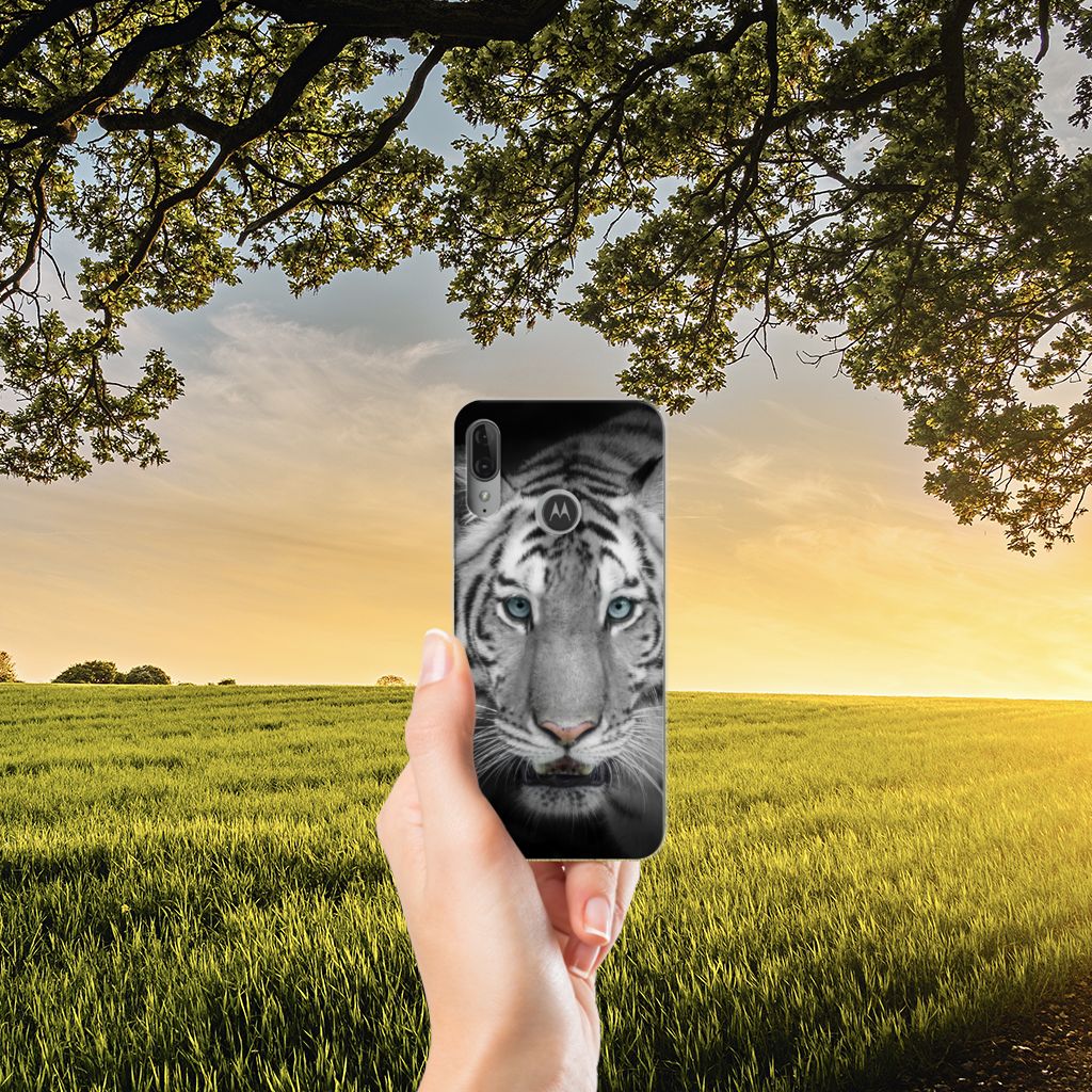 Omdat de Witte Tijger zo bijzonder is, zijn wij bereid deze voor zeer lage kosten op een tpu case te zetten. Dit kunnen we zo goedkoop doen omdat we het drukwerk in eigen beheer doen. Witte tijgers leefden lange tijd in de bossen van India, Bangladesh, Nepal, Bhutan en China en kunnen wel 257 kilo wegen. Dit zwaargewicht kunnen we bedrukken op verschillende soorten hoesjes, zoals deze tpu cases. Deze Motorola Moto E6 Plus TPU Hoesje kan exclusief in het bezit van jou komen. Zeker als je er zelf nog unieke teksten en/of beelden aan toevoegt. Het tpu hoesje is zeer flexibel en wordt alleen aan de bovenzijde bedrukt. De randen van dit flexibele hoesje blijven doorzichtig. Tegenwoordig zijn witte tijgers alleen in gevangenschap te bewonderen. Jij zorgt voor een goede bescherming van je smartphone met dit design hoesje met witte tijger.