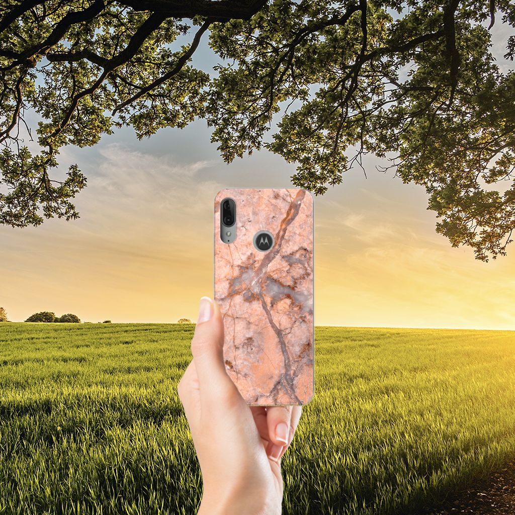 Motorola Moto E6 Plus TPU Siliconen Hoesje Marmer Bruin
