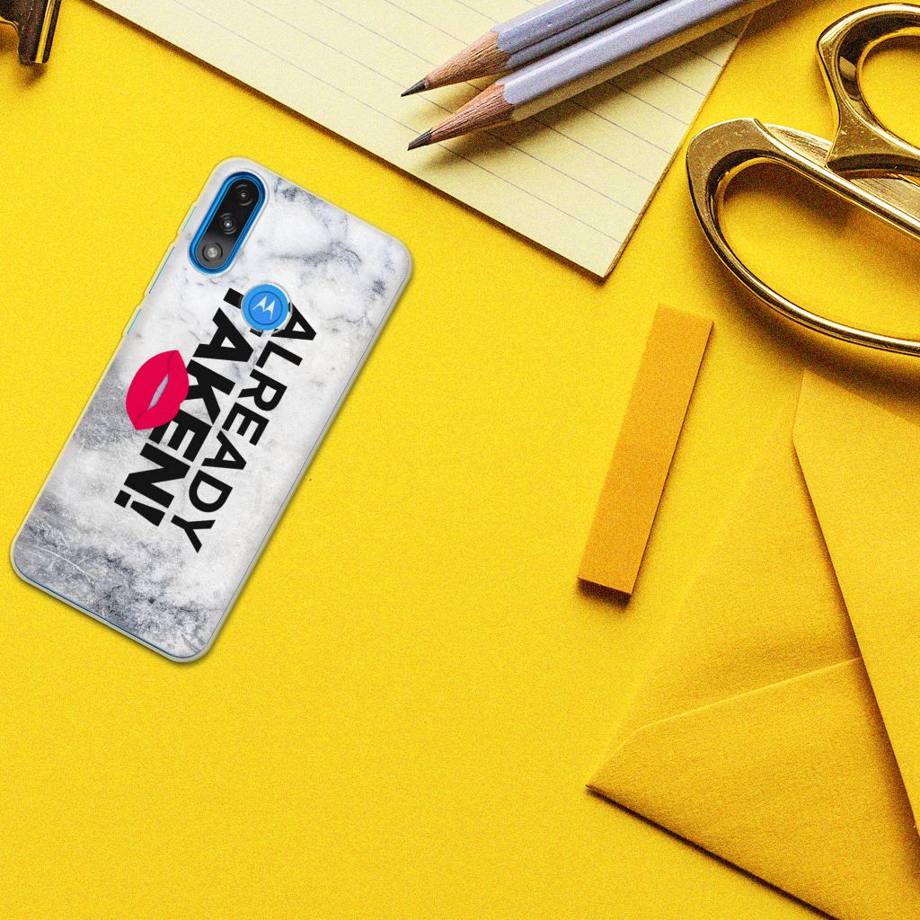 Stel dat je opdringende vrouwen of mannen van je af wil schudden op het moment dat je aan het feesten bent, omdat je al een partner hebt. Dan kun je dat met dit hoesje uitstekend duidelijk maken. Je Motorola Moto E7/E7i Power neem je waarschijnlijk vaak ter hand, dus dan zal de boodschap als je over dit hoesje beschikt zeker weten overkomen. Ook in het openbaar vervoer zal dit hoesje ervoor zorgen dat je minder snel versierd wordt door het andere geslacht. Als je vrijgezel bent en op zoek naar gezelschap, dan kun je beter kiezen voor een ander hoesje uit ons ruime en gevarieerde assortiment. Het design Already Taken White staat op een Siliconen hoesje met naam. Dit hoesje wordt alleen aan de bovenkant bedrukt en is zeer flexibel. De randen van het hoesje blijven transparant.