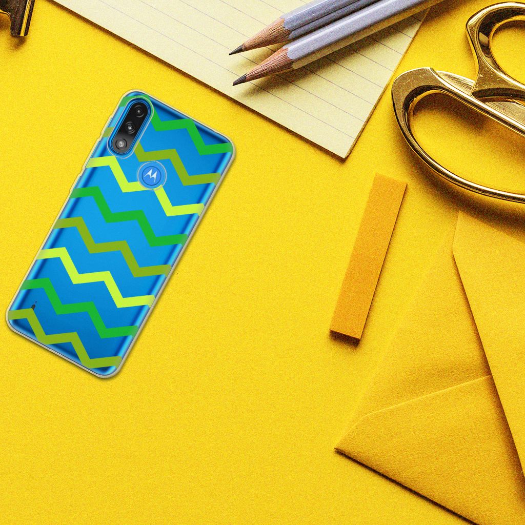 Dit zigzag groene design hoesje is speciaal ontworpen voor jou. We hebben bewust verschillende stijlen groen gebruikt, zodat er voldoende sprake is van variatie. Dit groene hoesje ziet er super strak uit. Dat kan ook niet anders als je weet dat onze designer zijn creativiteit heeft gebruikt. Hij schudt voortdurend nieuwe designs uit zijn mouw en dit zigzag groene hoesje is een van zijn fraaiste creaties. Een heel tof Motorola Moto E7/E7i Power TPU bumper, al zeggen we het zelf. Valt dit Zigzag Groen design hoesje goed bij jou? Bestel het dan vandaag nog en je hebt het morgen in huis. Het design staat op een TPU case. Dit hoesje wordt alleen aan de bovenkant bedrukt en is zeer flexibel. De randen van het hoesje blijven transparant en worden niet bedrukt. Met dit hoesje past jouw telefoon altijd in je broekzak.