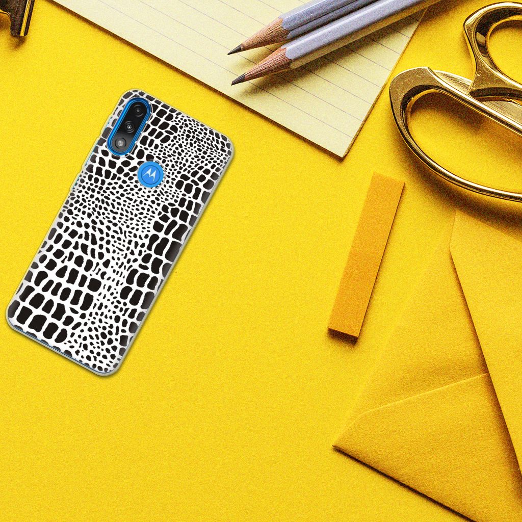 Deze tpu case met zwarte en witte Slangenprint kunnen wij zeer exclusief noemen. Zeker als je er nog een bijzondere tekst van jezelf aan toevoegt, zoals je eigen naam in een sierletter. Jouw tpu case krijgt dan een persoonlijke uitstraling, net nog een beetje specialer dan dit hoesje met zwarte en witte slangenprint. Wat niets afdoet van de exclusiviteit van deze tpu case met zwarte en witte slangenprint. Ben jij toe aan een stoer en opvallend Motorola Moto E7/E7i Power TPU Hoesje? Pak dan dit design met print van slangenhuid als basis. Het tpu hoesje is zeer flexibel en wordt alleen aan de bovenzijde bedrukt. De randen van dit flexibele hoesje blijven doorzichtig. Jij bent ervan verzekerd dat jouw smartphone tegen een stootje kan met dit tpu hoesje met zwarte en witte slangenprint.