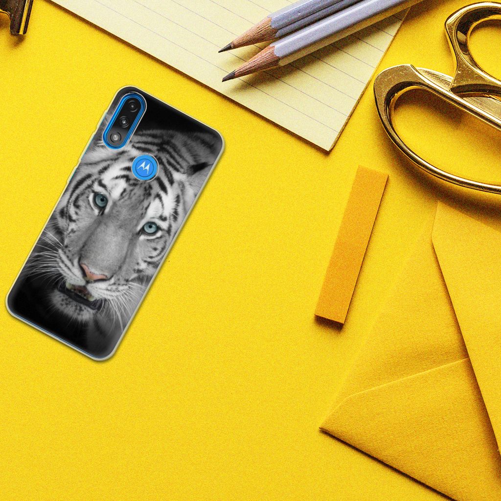 Omdat de Witte Tijger zo bijzonder is, zijn wij bereid deze voor zeer lage kosten op een tpu case te zetten. Dit kunnen we zo goedkoop doen omdat we het drukwerk in eigen beheer doen. Witte tijgers leefden lange tijd in de bossen van India, Bangladesh, Nepal, Bhutan en China en kunnen wel 257 kilo wegen. Dit zwaargewicht kunnen we bedrukken op verschillende soorten hoesjes, zoals deze tpu cases. Deze Motorola Moto E7/E7i Power TPU Hoesje kan exclusief in het bezit van jou komen. Zeker als je er zelf nog unieke teksten en/of beelden aan toevoegt. Het tpu hoesje is zeer flexibel en wordt alleen aan de bovenzijde bedrukt. De randen van dit flexibele hoesje blijven doorzichtig. Tegenwoordig zijn witte tijgers alleen in gevangenschap te bewonderen. Jij zorgt voor een goede bescherming van je smartphone met dit design hoesje met witte tijger.