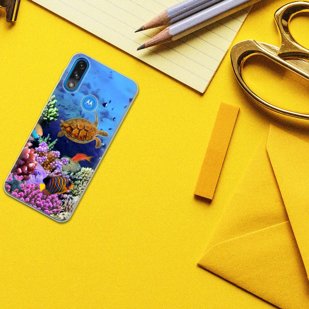 Dit kleurrijke hoesje met tropische Vissen is een ware eyecatcher. Als je aan het duiken bent en je treft een school aan met dit soort opvallende vissen, dan heb je een geweldige ervaring. Maar je hoeft er eigenlijk niet per se het water voor in te duiken. Want wij hebben een schitterende verzameling vissen op dit design hoesje gezet. Met onze zeer geavanceerde printer zetten we de afbeelding van vissen op de bovenkant van de Motorola Moto E7/E7i Power TPU Hoesje, de randen blijven transparant. De case is gemaakt van zeer elastisch en onbreekbaar materiaal. Verder is je telefoon natuurlijk goed beschermd met deze tpu case met print van vissen. Deze case heeft tevens opstaande randen, waardoor je scherm de grond niet zal raken als de smartphone uit je handen valt.