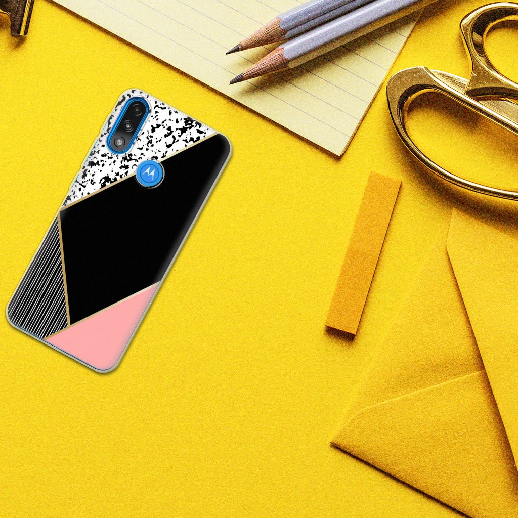 TPU Hoesje Motorola Moto E7/E7i Power Zwart Roze Vormen Design