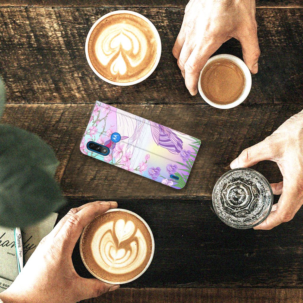 Wauw! Met deze opvallende en kleurrijke Motorola Moto E7 Power | E7i Power Hoesje maken met paarse pauw blijft jouw toestel in uitzonderlijke staat. De pauw fleurt jouw stand case enorm op. Het design hoesje met deze pauw in roze en paarse kleuren is een zeer goede bescherming voor je telefoon. Het spetterende stand hoesje met opvallende pauw beschermt jouw telefoon aan alle zijden en beschikt over een opbergvakje voor een pasje of briefgeld. De roze met paarse case sluit perfect af met de magneet aan de binnenzijde. De houder aan de binnenzijde van het schitterende stand hoesje is van TPU. Dit is ook nog eens zeer flexibel materiaal. Het pu leer aan de buitenkant oogt zeer chique. Kijk voor andere dieren op een design hoesje binnen deze fraaie collectie. Ook kun je zelf een hoesje ontwerpen met je favoriete dier.