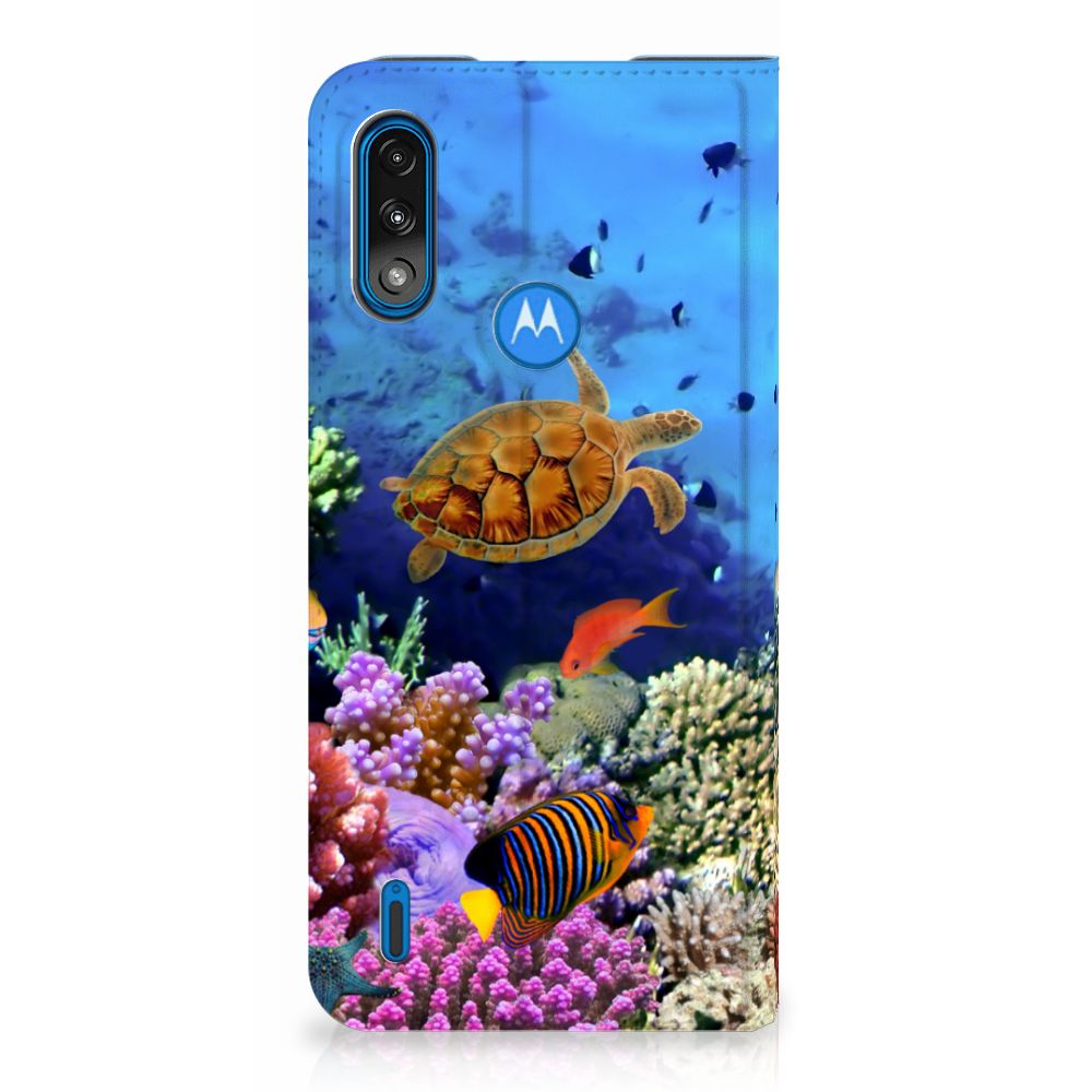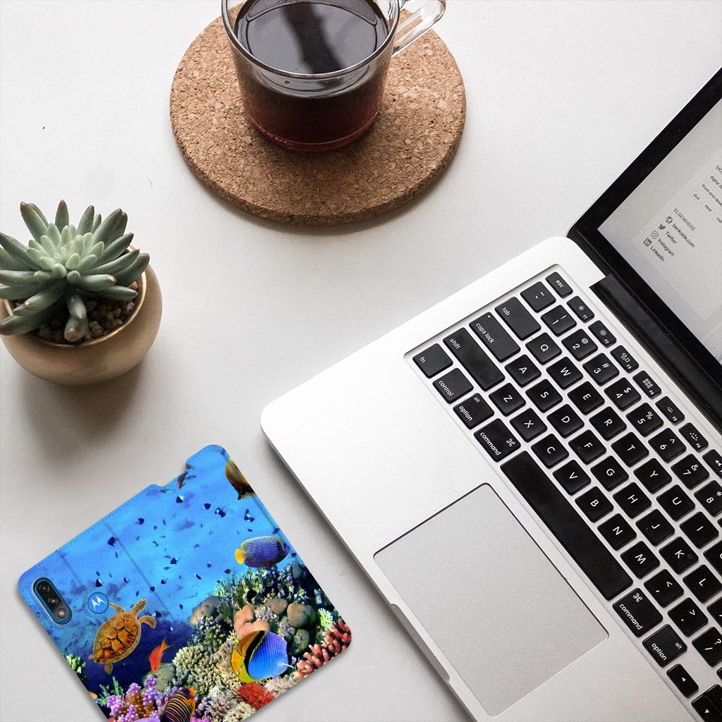 Dit kleurrijke hoesje met tropische Vissen is een ware eyecatcher. Als je aan het duiken bent en je treft een school aan met dit soort opvallende vissen, dan heb je een geweldige ervaring. Maar je hoeft er eigenlijk niet per se het water voor in te duiken. Want wij hebben een schitterende verzameling vissen op dit design hoesje gezet. Met onze zeer geavanceerde printer zetten we de afbeelding van vissen op alle zijden van de Motorola Moto E7 Power | E7i Power Hoesje maken. De case heeft aan de binnenkant een vakje waarin je jouw creditcard of ander pasje kwijt kunt. Ga je een dagje vissen, dan hoef je de portemonnee dus ook niet op zak te hebben. Verder is je telefoon natuurlijk maximaal beschermd met deze stand case met print van tropische vissen. De houder aan de binnenzijde van het design hoesje met vissen print is van TPU.