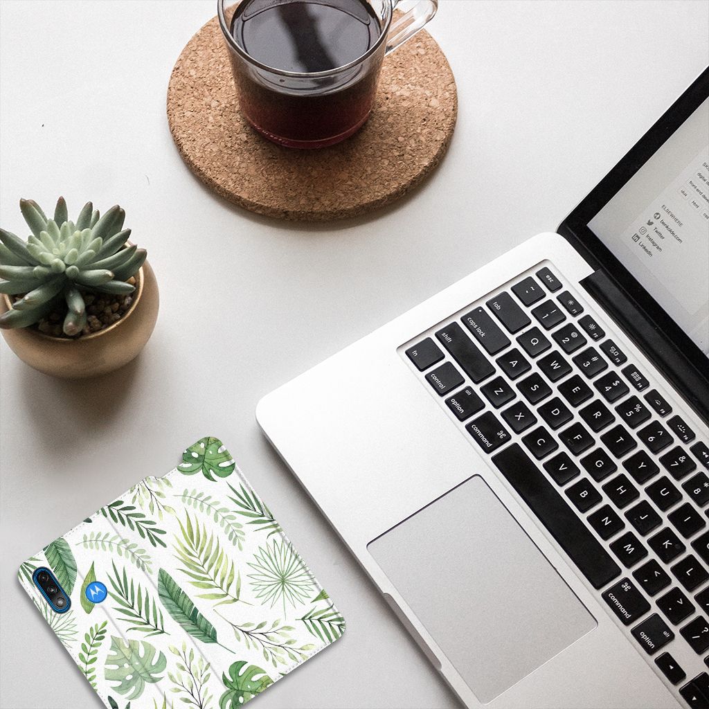 Je voelt je verbonden met de natuur als je kiest voor deze Motorola Moto E7 Power | E7i Power Smart Cover met print Leaves. De print bestaat uit verschillende groene bladeren en dit zorgt voor een fraai decoratief geheel. Met dit patroon van groene bladeren creëer je een frisse uitstraling voor jouw smartphone. Jij doet er verstandig aan om je telefoon te beschermen met dit design hoesje met groene bladeren, die staan op een stand case. Dit hoesje kenmerkt zich onder meer door het handige vakje aan de binnenzijde en de magnetische sluiting aan de binnenzijde. Voel jij jezelf gezond met een beeld van groene bladeren, dan is deze stand case met print een uitstekende optie. Het beschermt jouw telefoon aan alle zijden. Het TPU aan de binnenzijde klemt zich perfect om jouw smartphone. Kijk ook eens naar onze andere hoesjes met bladeren of misschien maak je zelf wel gewoon liefst je eigen hoesje met eigen foto’s van bladeren.