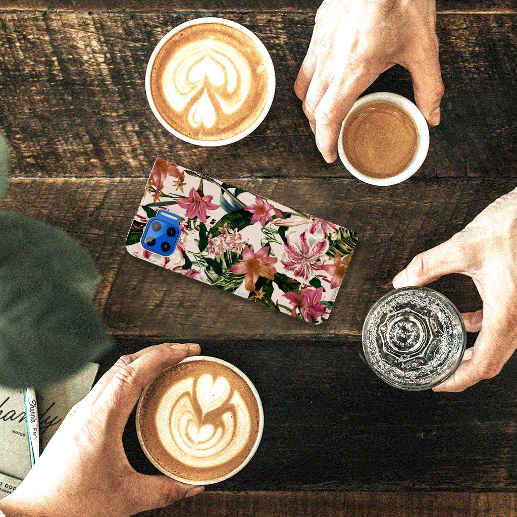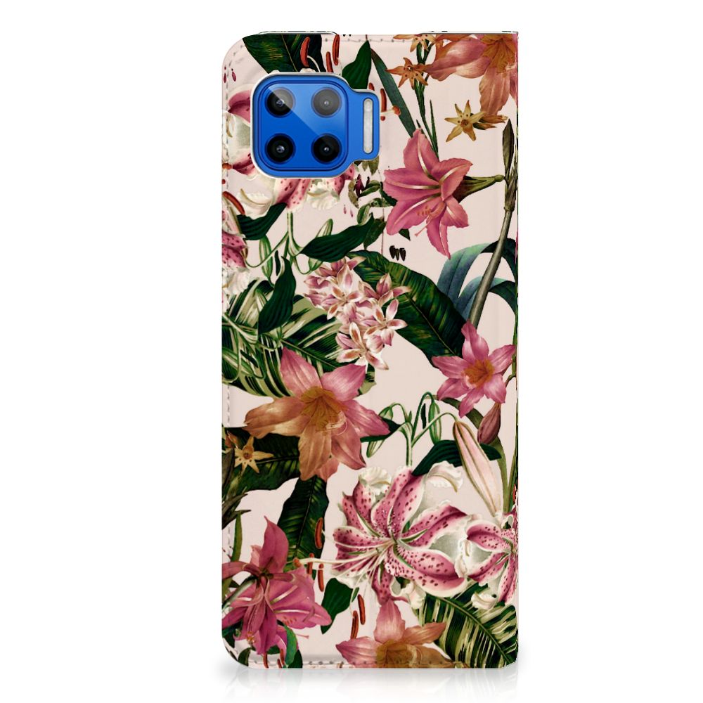 Dit Flowers design is een zegen voor de mens en zijn smartphone. De paarswitte bloemen en groene bladeren op deze Motorola Moto G 5G Plus Smart Cover geven jouw smartphone een zeer sierlijke uitstraling. Je krijgt er meteen een goed gevoel bij als je aan het appen, mailen of aan het bellen bent. Valt dan je telefoon op de grond, dan zal er dankzij de stand case met paarswitte bloemen en groene bladeren geen schade ontstaan. Onze stand cases met paarswitte bloemen en groene bladeren bieden de allerbeste bescherming en zijn heel praktisch, wat blijkt uit onder meer het vakje aan de binnenkant en de handige standaard waarmee je de smartphone rechtop op tafel neer kunt zetten. De paarswitte bloemen en groene bladeren komen op alle zijden van de case te staan. Op deze stand case van leer en TPU (houder aan de binnenkant) kun je in no time zelf foto’s van jouw favoriete bloemen zetten.