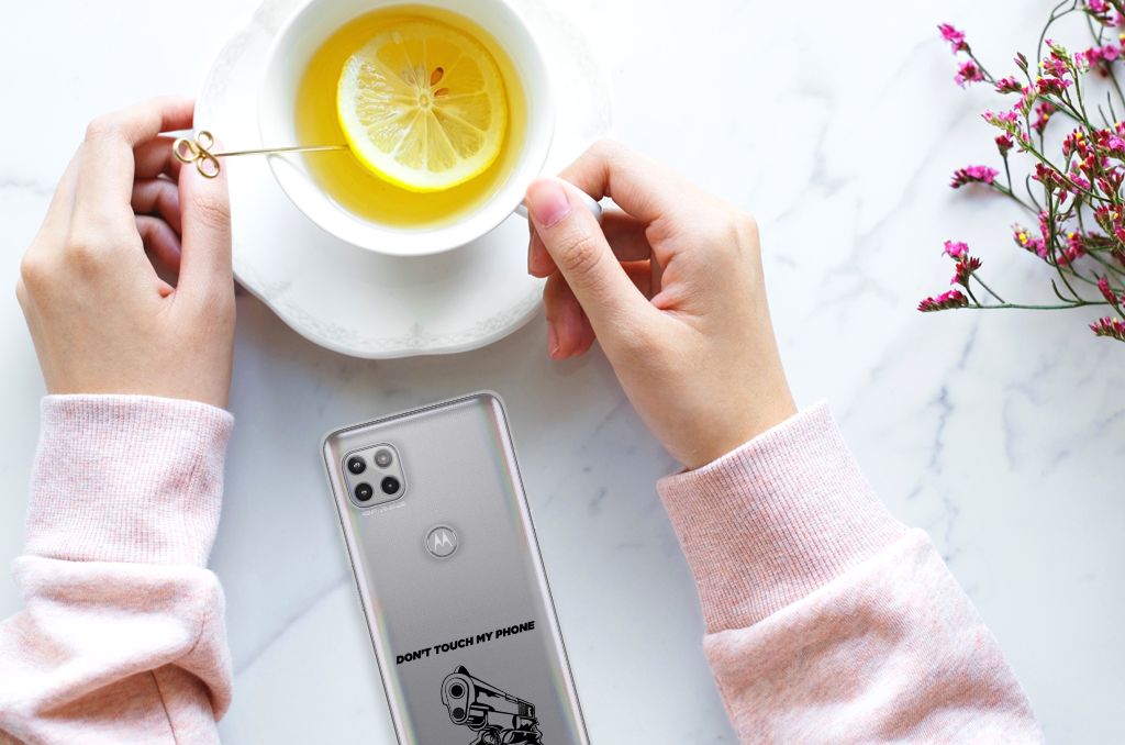 Ben je op zoek naar een uniek telefoonhoesje voor je Motorola Moto G 5G? Dan ben je bij B2C Telecom aan het juiste adres! Speciaal voor jou hebben we dit prachtige Gun DTMP design in onze collectie hoesjes opgenomen. Het design wordt bedrukt op een Silicone-hoesje en is gemaakt van flexibel rubber. Het design wordt alleen aan de bovenkant van het hoesje bedrukt en de randen blijven transparant. Aan de zijkanten zijn uitsparingen gemaakt waardoor je met gemak alle knoppen en poorten kunt bedienen. Wij adviseren om dit hoesje in combinatie met een screenprotector te gebruiken voor een langere levensduur van je telefoon. Wil je dit design hoesje nog iets extra's geven? Voeg dan gratis je naam of een quote toe! Is dit design hoesje toch niet helemaal wat je zocht? Ontwerp dan zelf een hoesje in ons ontwerpprogramma.