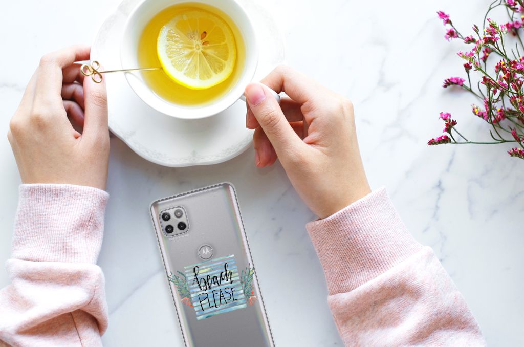 Dit design is perfect voor iedereen die geen genoeg kan krijgen van zon, zee en strand. Met dit Telefoonhoesje met Naam voor de Motorola Moto G 5G draag je de zomer altijd een beetje bij je. Dankzij de tekst ‘Beach Please’ ziet iedereen dat je een echte zonaanbidder bent. Het boho beach-ontwerp is vrolijk dankzij de subtiele bloemen en de leuke kleurtjes. TPU is flexibel en heel erg sterk. Zo is je telefoon aan de achterkant en de randen heel goed beschermd. De case is aan de bovenkant bedrukt, de randen blijven transparant. Het TPU-hoesje is perfect te combineren met een screenprotector, zo zijn je telefoon en je beeldscherm altijd goed beschermd.