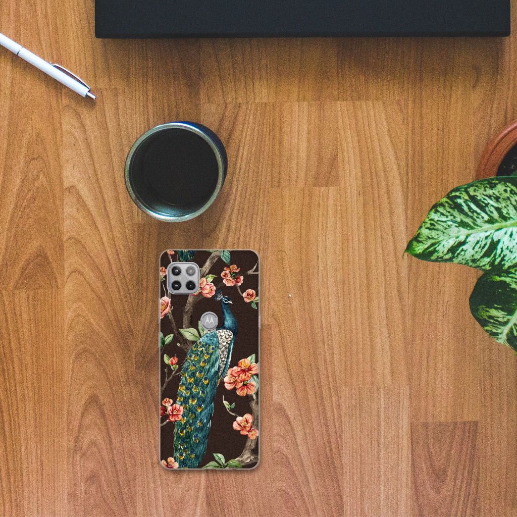 Op deze Motorola Moto G 5G TPU Hoesje kun jij zo trots als een pauw zijn. Met dit geweldige design hoesje met een Pauw met Bloemen erop kun jij je smartphone voor zeer lange tijd beschermen. Deze tpu case is zeer duurzaam en gemaakt van zeer elastisch materiaal. Je bent zeer flexibel met deze TPU case met print van een pauw. Met een tpu case met fleurige bloemen en trotse pauwen wordt jouw telefoon er een stuk mooier op. De onderscheidende case heeft opstaande randen aan de voorzijde en wordt alleen aan de bovenzijde bedrukt. Zie jij liever jouw eigen huisdier op een telefoonhoesje? Dan adviseren we je zelf een hoesje te ontwerpen met onze unieke Phone Case Designer.
