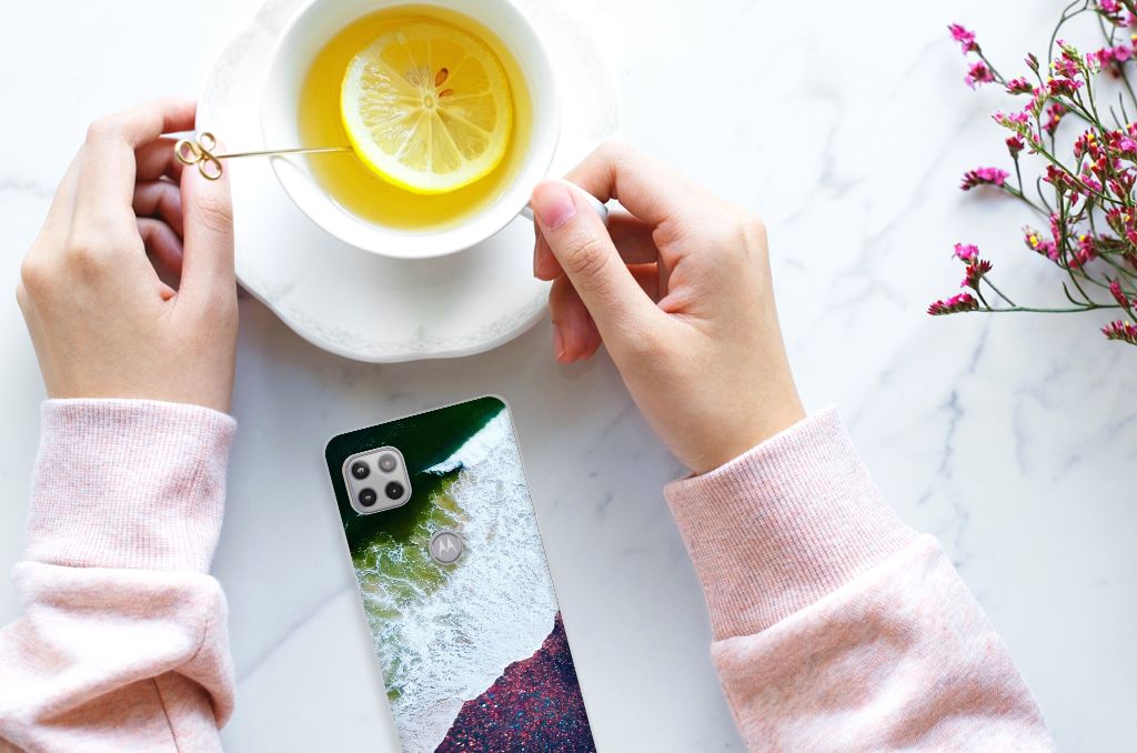 Ben je een beetje een artistiek type? Dan kan je wel eens enthousiast raken van dit smartphonehoesje. ‘Sea in Space’, zo noemt onze grafisch designer dit ontwerp. Dus mensen die van zon en zee kunnen genieten en tegelijkertijd van science fiction houden zullen deze case ongetwijfeld mooi vinden. Een beetje glitter en glamour zou je met een beetje fantasie ook nog wel kunnen ontdekken in dit design hoesje. Dit artistieke kunstwerkje is voor heel weinig geld te bestellen op onze website. Je krijgt er maximale bescherming van je Motorola Moto G 5G voor terug. Het design staat op een TPU Hoesje. Dit hoesje wordt alleen aan de bovenkant bedrukt en is zeer flexibel. De randen van het hoesje blijven transparant en worden niet bedrukt.
